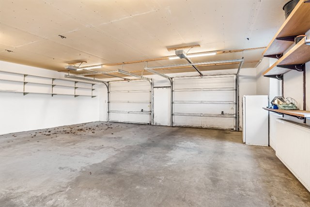 Garagen er med 2 el-porte, og fremstår i god stand. Der er ligeledes indgang til boligen. Garagen er oplagt til dig der har brug for de ekstra plads til hobbyen.