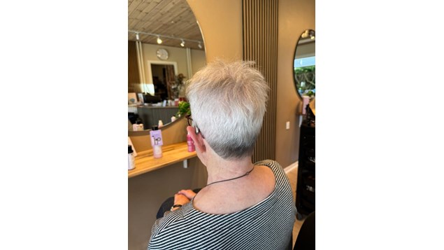 I dag havde jeg besøg af Rigmor . Rigmor er gamle frisør . Hun er lige bleven 90 år . Selv om man er 90 år vil man gerne ha noget smart kort hår Rigmor er kommen på salonen i 31år