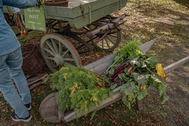 Køkkenhaverne er også høstet for efterårets lækkerier – og det bedste af det hele? Du kan købe det med hjem! Kartofler, løg og gulerødder er stakket op på vores hyggelige høst-bod.