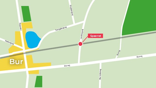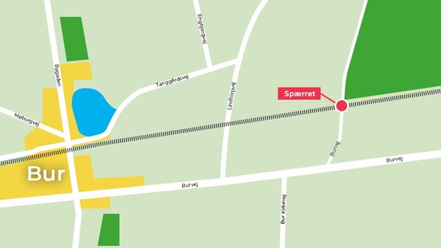 Kort over afspærring af Banedanmark overkørsel - Burvej