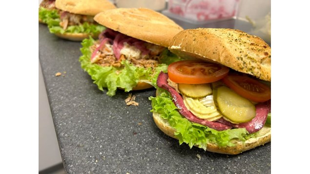 Vi foreslår frisksmurte sandwich sliders eller en salatbowl..