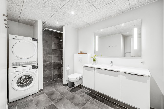 Nyere lejlighed med et moderne udtryk, der er både stilfuldt, komfortabelt og med vestvendt terrasse.