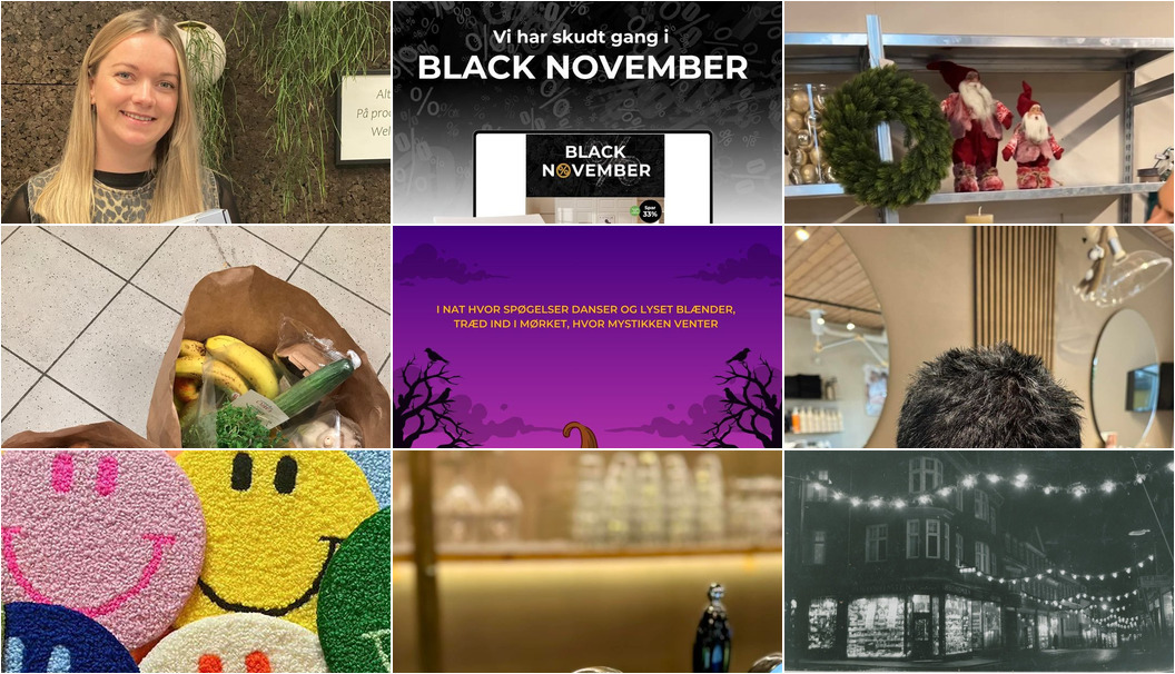 Møblér med Kumo Holstebro har startet Black November med store besparelser på udvalgte varer. Restaurant Cooks fejrer julen med Grimbergen Brassin de Noël på menuen, som kan nydes hele november og december. Holstebro Museum har tændt julelys i bymidten, hvilket også inkluderer museet for første gang. Obitsø Frisørsalon i Borbjerg tilbyder et sæt med HH Simonsen produkter til en særlig pris på 999 kr. MIN KØBMAND I ASP havde frugt- og grøntposer til madspildsbekæmpelse, men de er nu udsolgt. For yderligere detaljer, læs de oprindelige opslag.