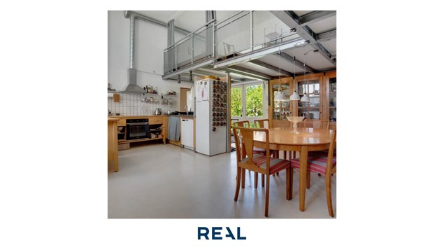 Nu udbydes en særlig ejerlejlighed i det charmerende og velbevarede "Gamle Mejeri" i Hornshøj. Lejligheden er indrettet med entré, et lyst køkken/alrum og stue i ét, hvor niveauforskellene skaber en spændende og dynamisk rumfornemmelse. Dertil kommer et badeværelse samt et værelse med trappe op til en hems - perfekt som ekstra soveplads, kontor eller kreativ krog.