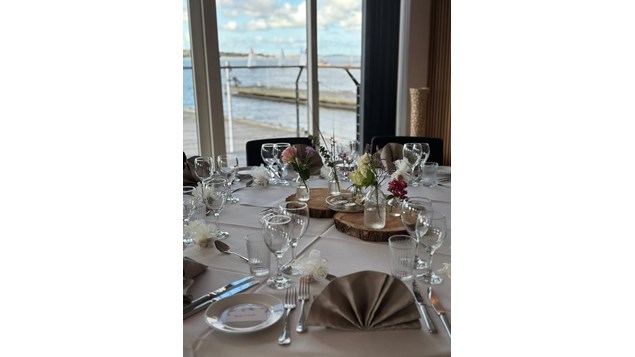 På 1. sal hos Restaurant Luna i Lemvig finder du Vestjyllands måske flotteste selskabslokale – med panoramaudsigt over indsejlingen til byen. Her bliver enhver fest til noget helt særligt, uanset om det er bryllup, rund fødselsdag eller firmafest.