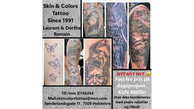 Skin & Colors Tattoo ApS er kommerciel partner med VORES Holstebro og oplysningerne er hentet fra deres Facebookside. Støt lokalt og giv en tommel op på deres side.