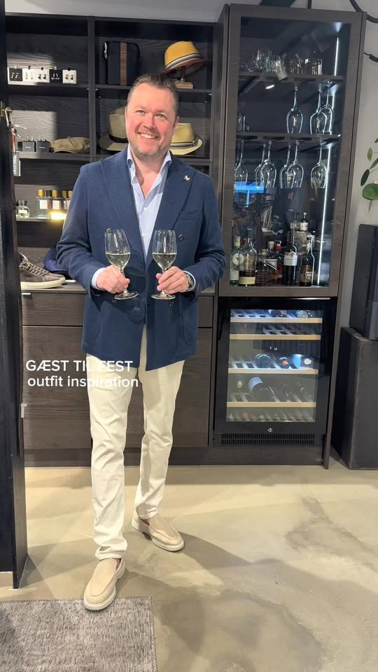 Gæst til fest Her giver vi et bud på et outfit til sæsonens fester. Nadia er i en kjole fra Gestuz, en blazer fra BOSS og sko fra Clarks Shoes . Jens er i en Tombolini blazer, skjorte fra Eton Shirts og bukser fra Tramarossa - for et mere casual look, styler han sættet med loafers fra @ahlershoes