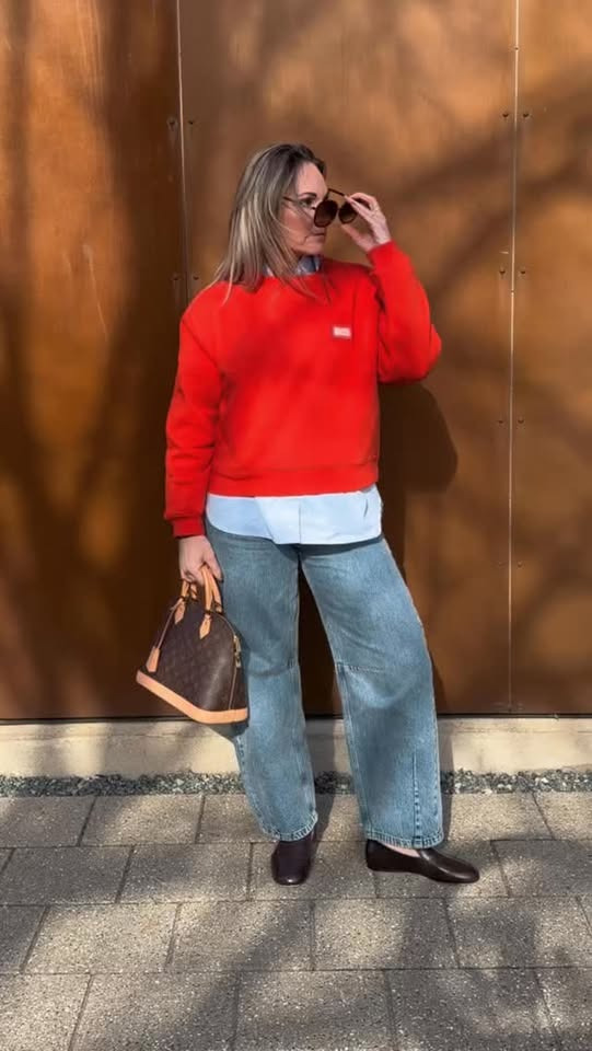 ….en rød sweat fra @madsnorgaard, barrel jeans fra @cocouture_official, en simpel oversize blå Oxford skjorte fra @gestuz og de underspillede brune loafers fra @boss…. Bare når vi snakker effortless cool